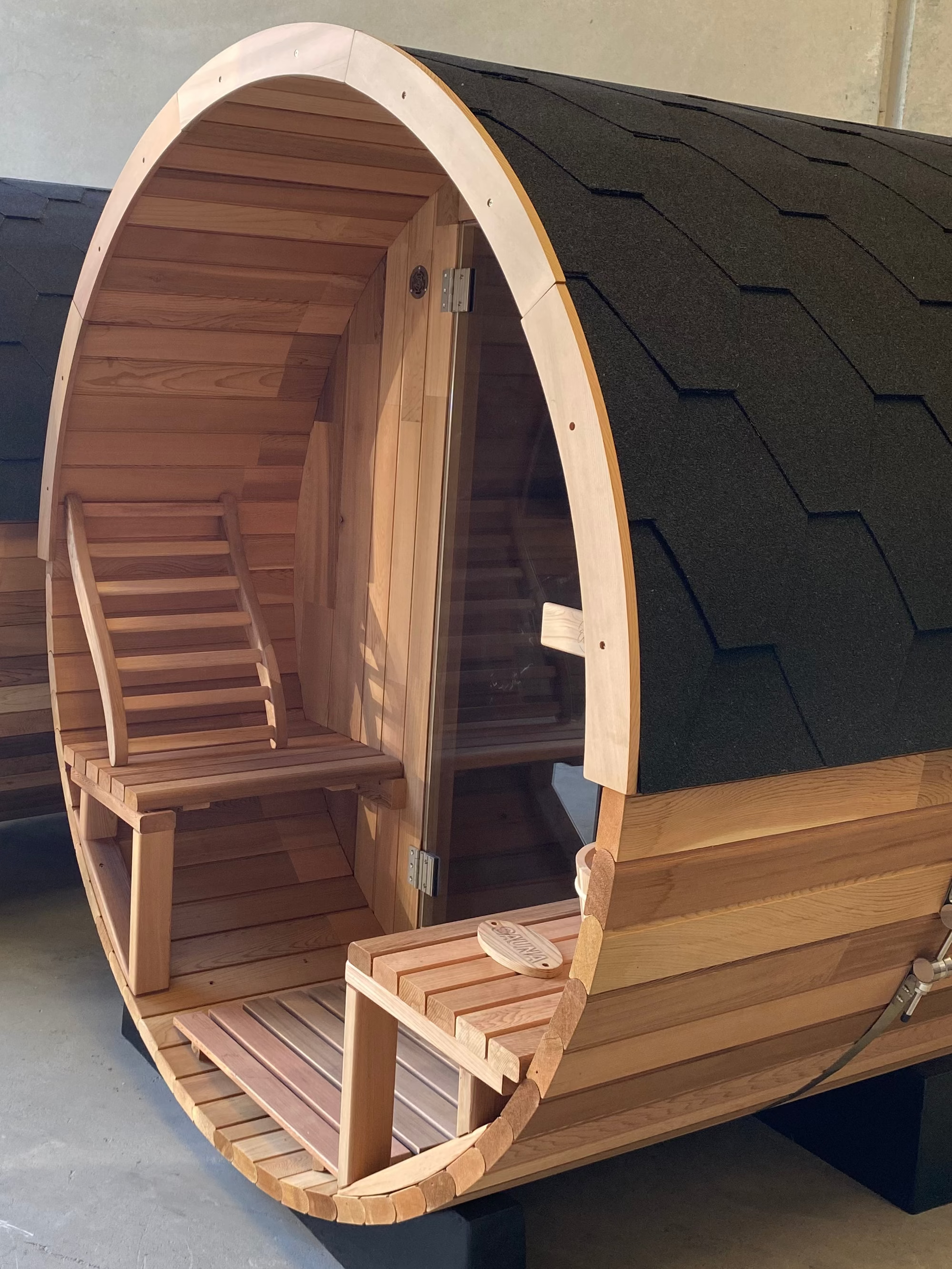 Built from Canadian Western Red Cedar, this sauna combines classic Finnish barrel design with modern touches for efficient heat, lasting performance, and a warm, welcoming interior.