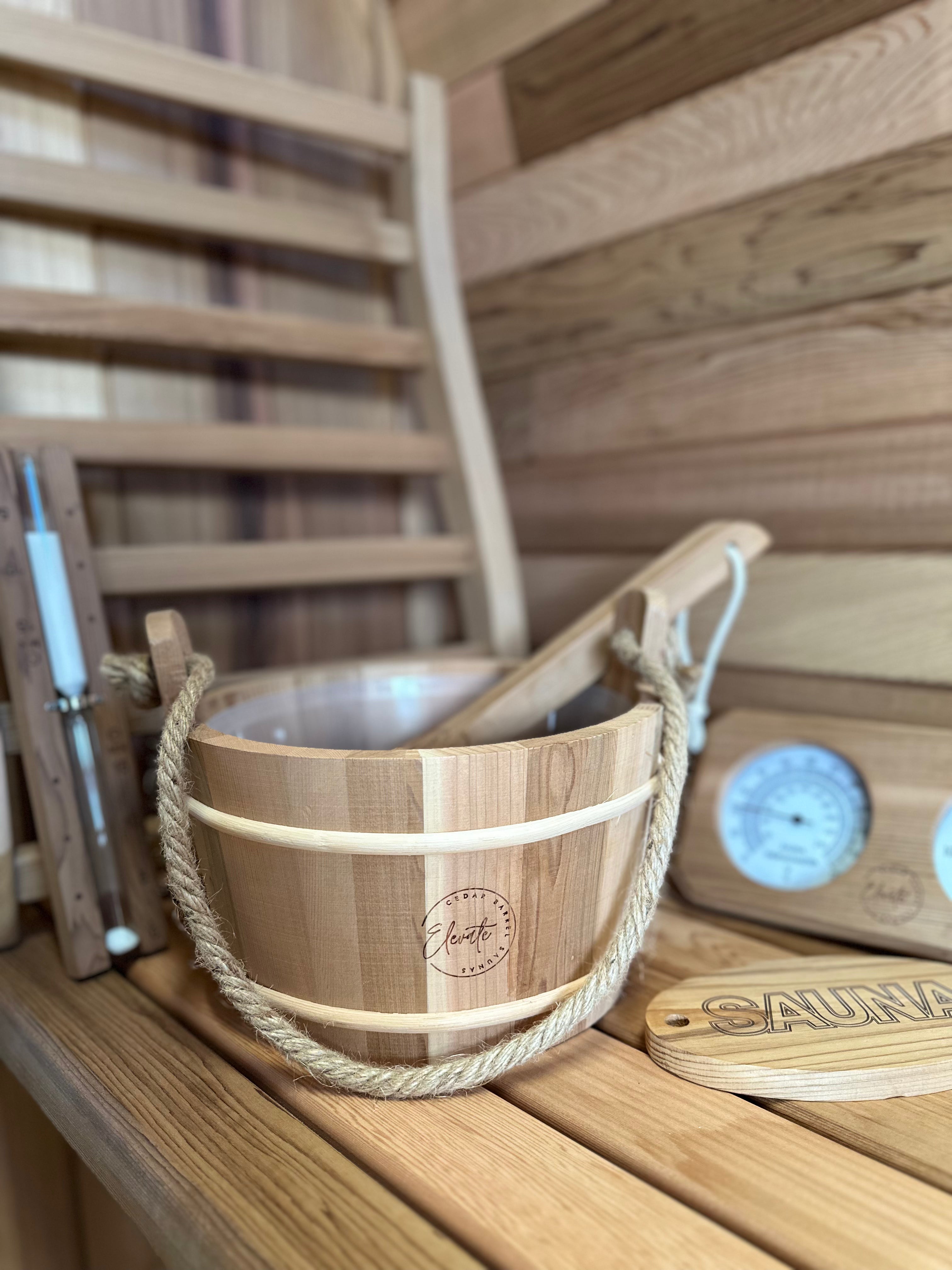 Each sauna comes fully equipped with bucket & ladle, volcanic rocks, thermometer, sand timer, interior light, towel hook, and backrests—everything you need for a complete sauna experience, with no hidden costs.