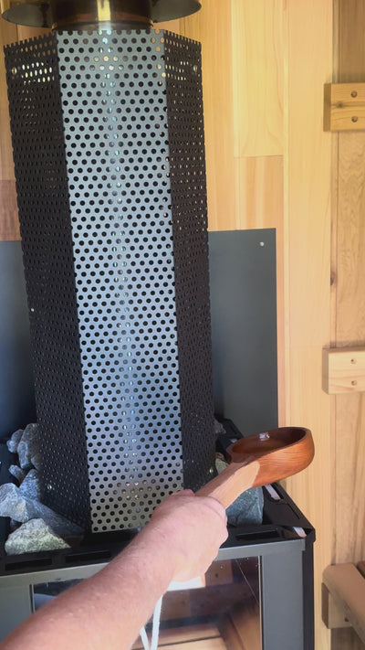 Designed for convenience and performance, the rear-fed stove allows you to load wood from outside the sauna—keeping the interior clean and undisturbed. Paired with a precision-fit chimney system ensuring a steady burn and strong, consistent natural draw, it’s a setup built for seamless function and authentic wood-fired experience.