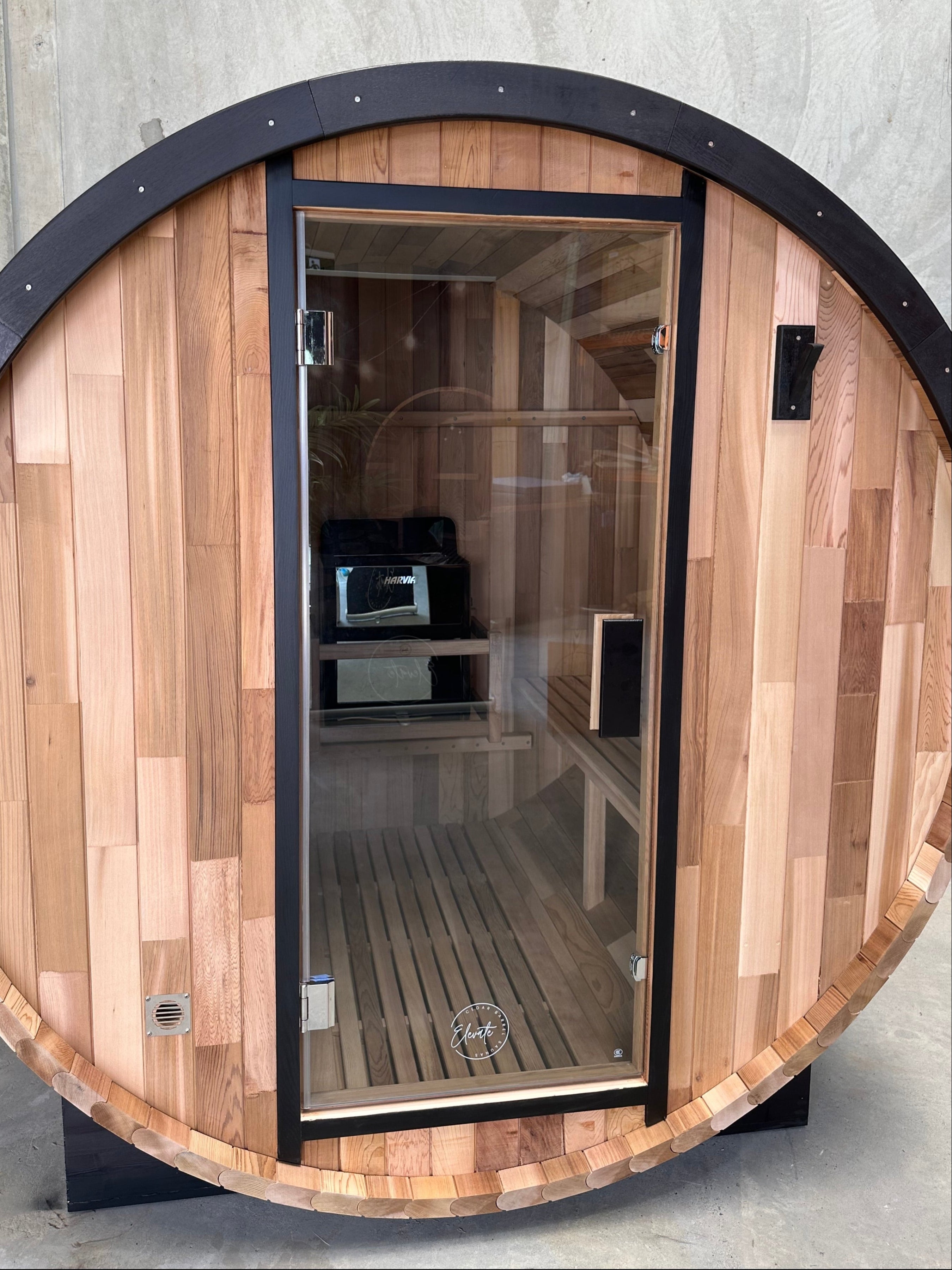 The Urban 2–4 Person Barrel Sauna is a statement piece with purpose, crafted for modern backyards and part of the Limited Black Edition Range. It pairs premium Canadian cedar with bold black accents for a sleek, architectural finish.